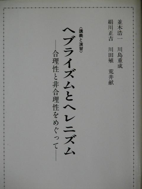 【書評】『ヘブライズムとヘレニズム』新地書房、一九八五年 これもかなり前の本。合同セミナーの記録でもある。五人の講師が発表と質疑応答をしたものを集めている。全体の共通テーマは合理性と非合理性をめぐってというものだ。並木浩一「イスラエルにおける神・人間・社会」は、イスラエルの社会史に詳しい並木氏がヘブライズムの合理性と非合理性について考察する。…書評の続きはこちらに。