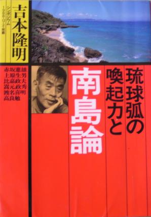 2003年11月26日 【書評】吉本隆明ほか『琉球弧の喚起力と南島論』 河出書房新社、一九八九年 一九七〇年代から考察してきた南島論を吉本が新しく転換した時期に沖縄で開かれたシンポジウムの記録。ほかに赤坂憲雄、上原生男、比嘉政夫、嵩元政秀、渡名喜明、高良勉が発言または執筆している。それまで天皇制を乗り越えることを目的に考察してきた南島論だが、この時期からは国家を超えるという目標に転換したために、説得力が増した。赤坂もいうように、天皇制をターゲットにしたのでは、天皇制について実感のないぼくたちにはあまり訴えかけなかったためだ。 書評の続きはこちらに。