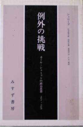2003年12月22日 【書評】ジョージ・シュワーブ『例外の挑戦』宮本盛太郎ほか訳、みすず書房、一九八〇年 カール・シュミットの政治思想を、1921年から1936年にかけて、そのおりおりの政治的な状況への対処として読みとく研究書。時代の中でシュミットの政治思想を考えることができるので、わかりやすい。ぼくの好みのアプローチだが、ところどころに無理を感じる。思想の根幹から目が外れてしまう傾向があるのは、この方法の難点でもある。書評の続きはこちらに。